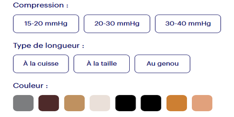 Ils sont disponibles dans une gamme de couleurs élégantes et dans les niveaux de compression ci-après :