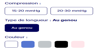• Prêt-à-porter : Ces vêtements de compression médicale sont disponibles en différentes tailles, longueurs, couleurs et catégories/niveaux de compression. Ils sont faciles à mesurer et à trouver en magasin.